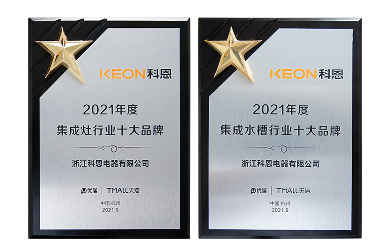 以優質產品打造品牌,以開拓精神推動進步,科恩集成灶在行業占據著舉足輕重的地位,成為行業的佼佼者,榮譽只是社會對科恩集成灶這個階段發展的認可,多次獲獎就證明科恩集成灶始終走在行業的前端!是肯定、是信賴,亦是專業的肯定,2021年9月,科恩集成灶一月內斬獲四大行業/協會“十大品牌”認證,實力由此可見!