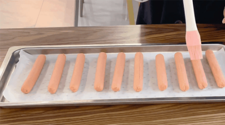 02給香腸表面均勻刷上一層油
