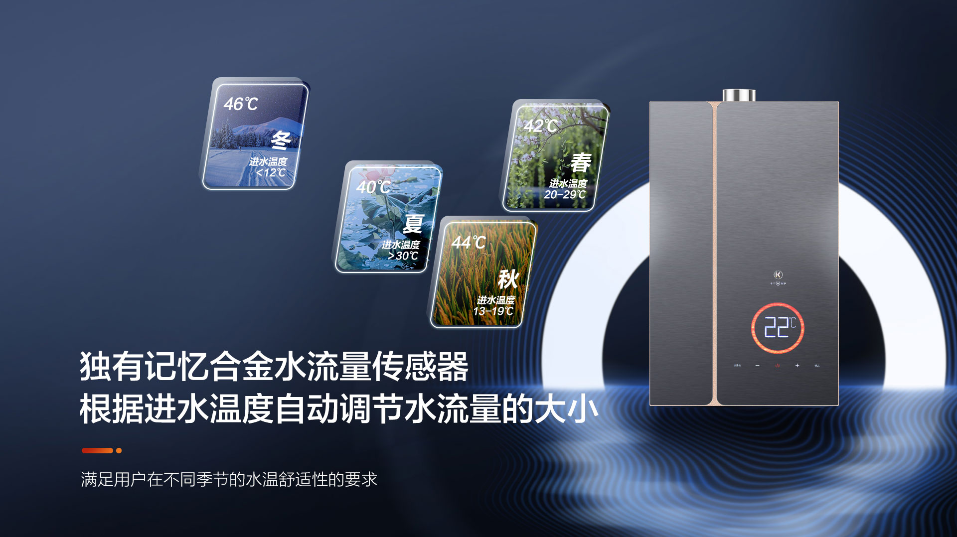 出水溫度不穩(wěn)定,冬天水太冷,夏天水太熱!再加上全屋多點用水,水量忽大忽小,水溫忽冷忽熱,舒適沐浴的好興致全被打破!科恩18Q6零冷水燃氣熱水器獨有記憶合金水流量傳感器,可根據(jù)進水溫度自動調(diào)節(jié)水流量大小,滿足用戶在不同季節(jié)的水溫舒適性的要求,新穎LED七彩顯示屏,搭載AI智控系統(tǒng),一鍵精準恒溫,快捷便利。
