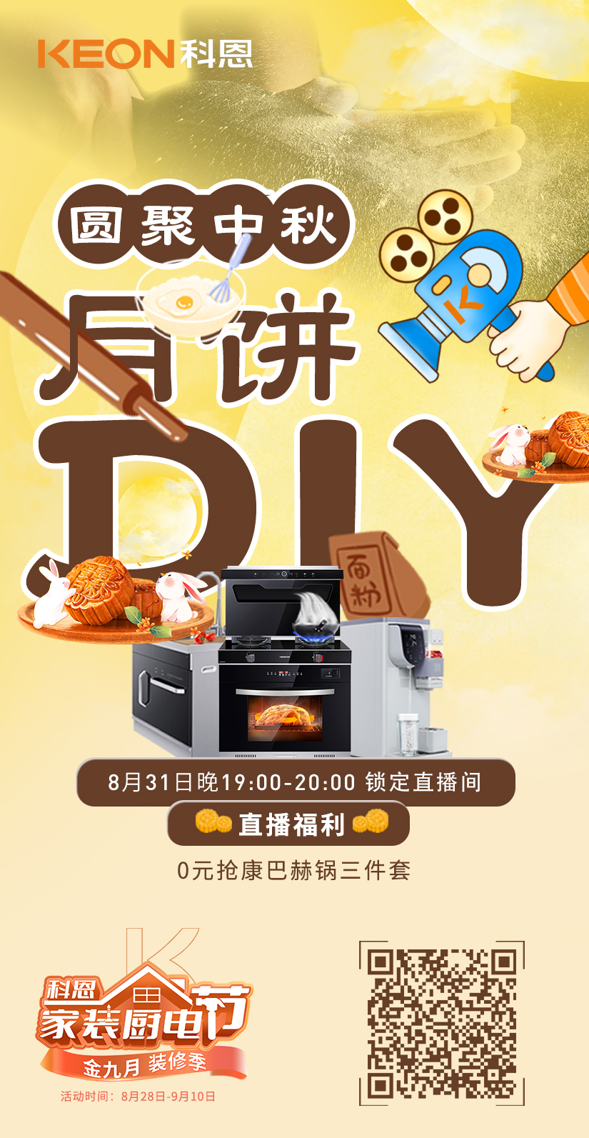 講真,吃久了外面買的月餅,總有那么一刻想要自己做來試試,而看到種種月餅DIY教程,呃……似乎難度……有點(diǎn)大!!??!于是!科恩集成灶就貼心的在科恩家裝廚電節(jié)活動(dòng)期間安排了【圓聚中秋,月餅DIY】為主題的直播活動(dòng)!手把手教你用科恩集成灶做高顏值的中秋月餅,而且據(jù)說直播現(xiàn)場(chǎng)還有0元搶康巴赫鍋三件套的壕氣福利!