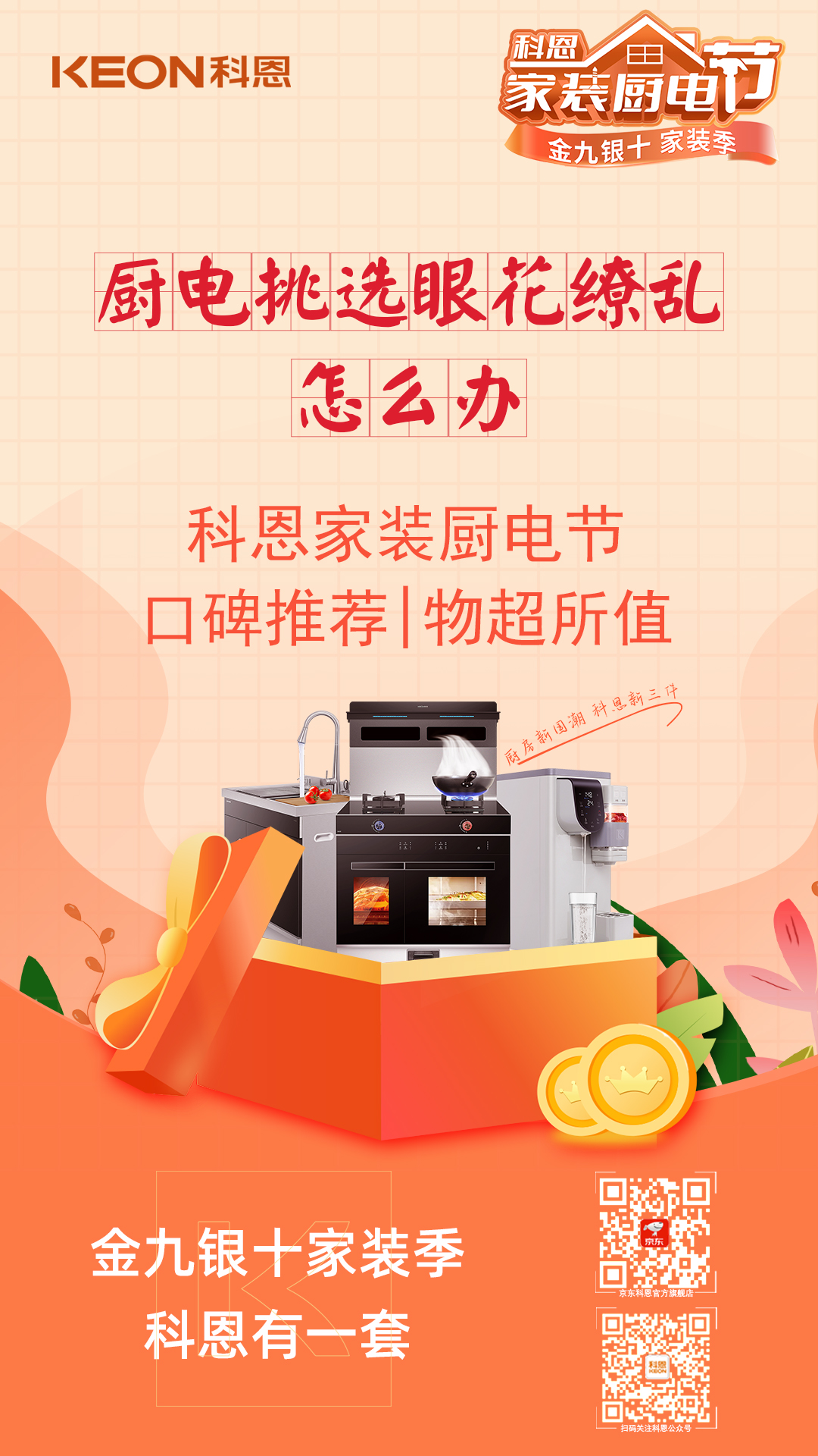 金九銀十正是家裝好時節,很多家庭會借此大好時機選購廚電產品打造心目中的理想廚房,市面上林林總總的電器那么多,與其精打細算、篩選比較大半天,不如前往全國科恩電器門店挑選一套稱心如意的廚電產品,實現省錢、舒心雙豐收。金九銀十家裝季——科恩家裝廚電節大促活動正在火熱進行中,1元特權卡,樂享六喜禮,口碑廚電好物,超值推薦,爆款廚電好物任你挑選,限時福利,還不抓緊入手一波!