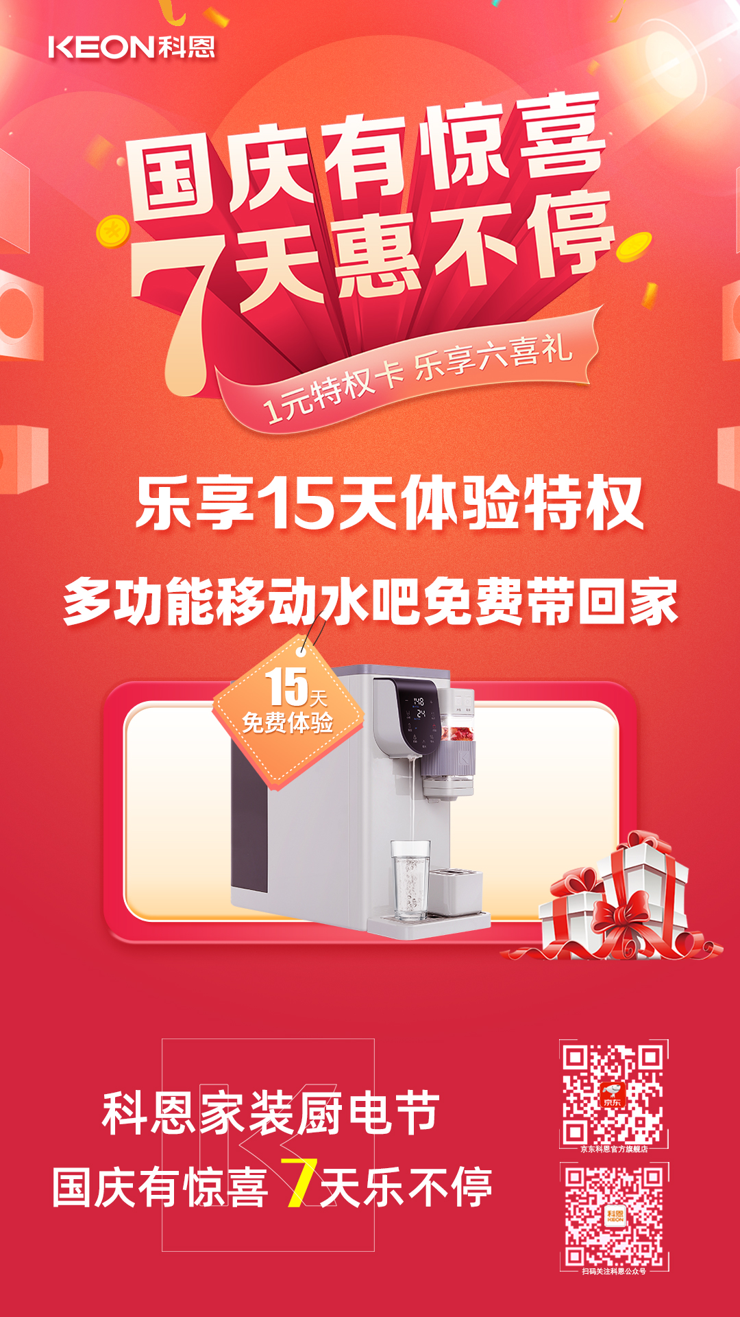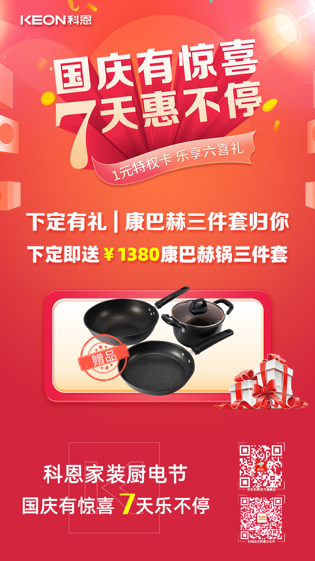 國(guó)慶價(jià)·提前享,科恩家裝廚電節(jié)之國(guó)慶專(zhuān)輯——國(guó)慶有驚喜,7天惠不停,科恩集成灶帶你嗨購(gòu)黃金周!