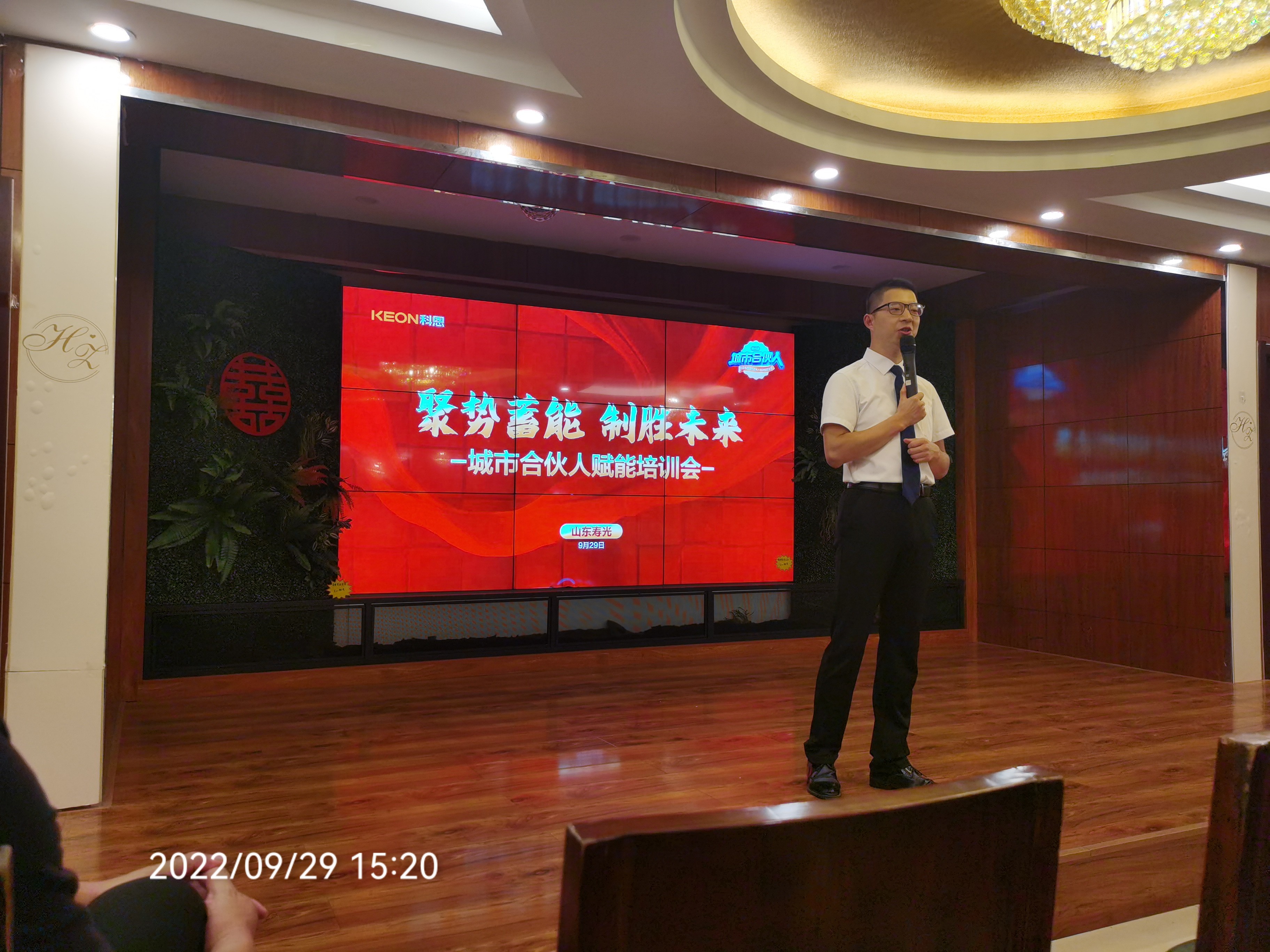 9月29日,科恩電器在山東壽光舉辦的“聚勢蓄能,致勝未來”城市合伙人培訓賦能會議取得圓滿成功!來自山東各地的百余名豪杰好漢齊集壽光,共同參與此次城市合伙人培訓賦能會議,山東省區域經理王鵬程致歡迎詞!