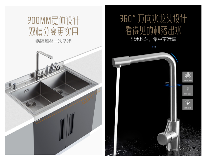 科恩X2多功能集成水槽,手工匠心鑄造,利用先進科技打造出高端鉆石品質,304不銹鋼材質,900mm寬體設計,大水槽加寬加深,無縫成型滴水不漏,小R角污垢無處可藏,X型導流有效排水,下水更通暢。