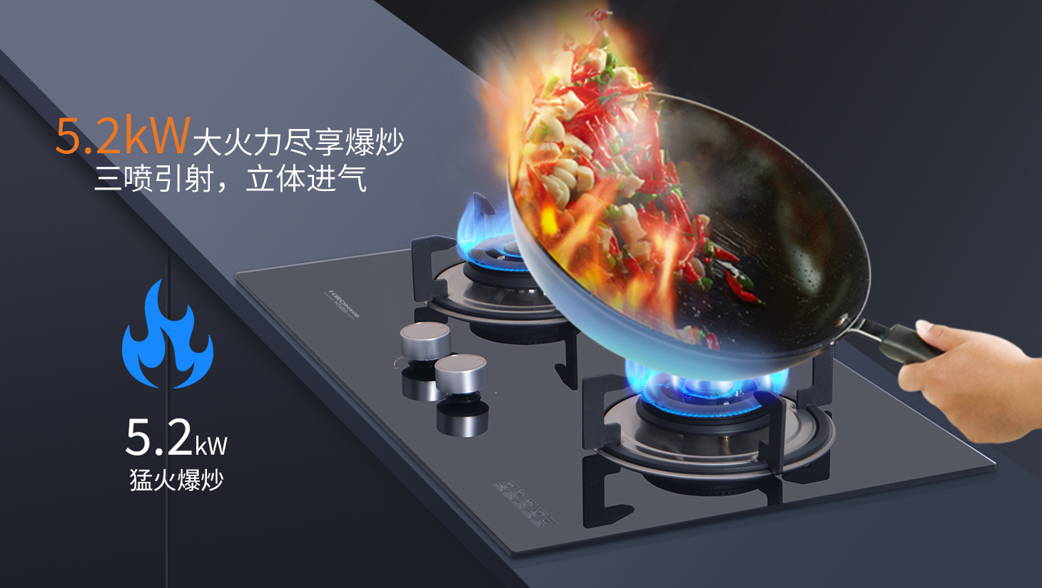 黑晶鋼化玻璃重塑清潔革命,防爆面板扛得住重?fù)?/span>,油漬一抹即凈。搭載航空級鋁合金燃燒器,防油防銹,不易變形。三年如一日的光潔質(zhì)感。科恩灶具KN89無懼爆炒,采用懸浮式燃燒系統(tǒng),充分補(bǔ)氧,助力燃燒。5.2KW火力全開,高效爆炒鎖住食物鮮香,點燃烹飪激情。搭配黑色搪瓷防滑爐架,耐高溫不易變形,火蓋與分火器一體設(shè)計。避免清洗后錯裝,KN89細(xì)節(jié)處盡顯貼心。