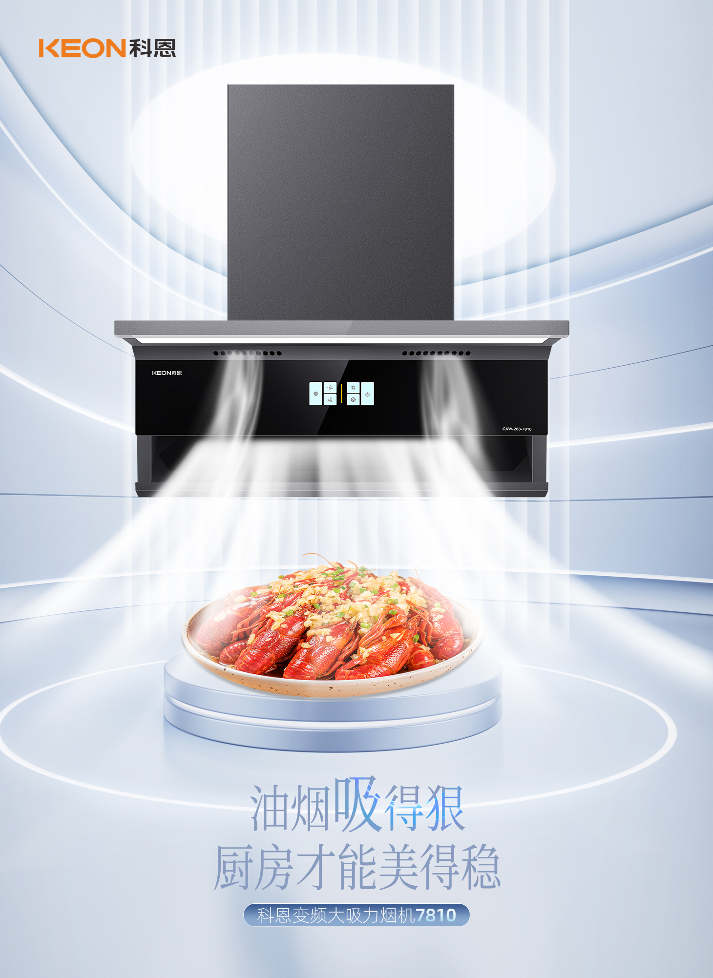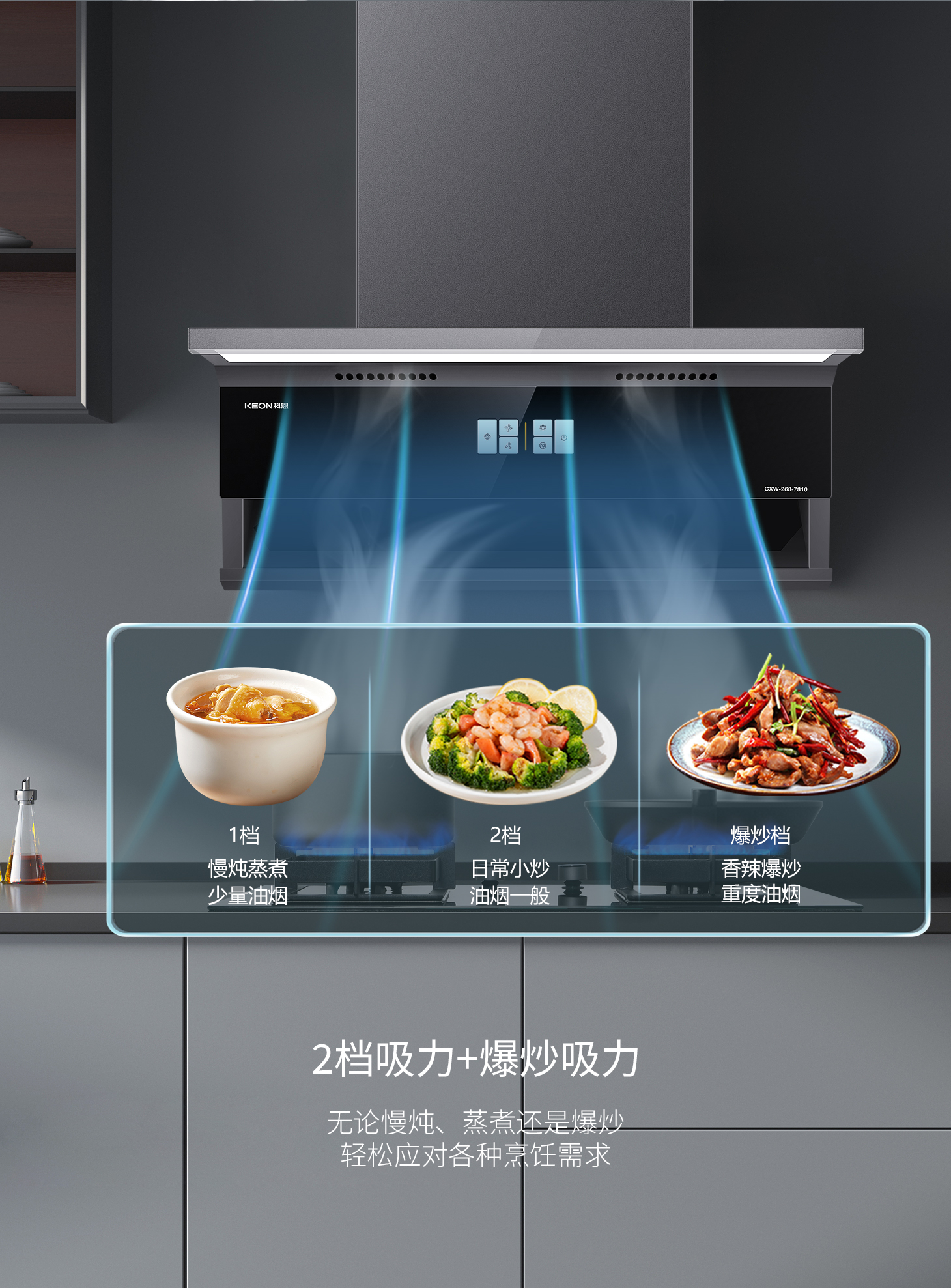 科恩旗艦款大吸力油煙機7810,兩檔吸力+爆炒模式,輕松下廚零負擔(dān)。智能自清洗去除頑固油污,延時凈煙自動清除余味,守護廚房每一寸清新。攜手科恩,煥新生活。科恩7810凈煙有魄力,廚房方寸皆自由。這個舊廚煥新季,換一臺會思考的煙機,給廚房一次溫柔革命!