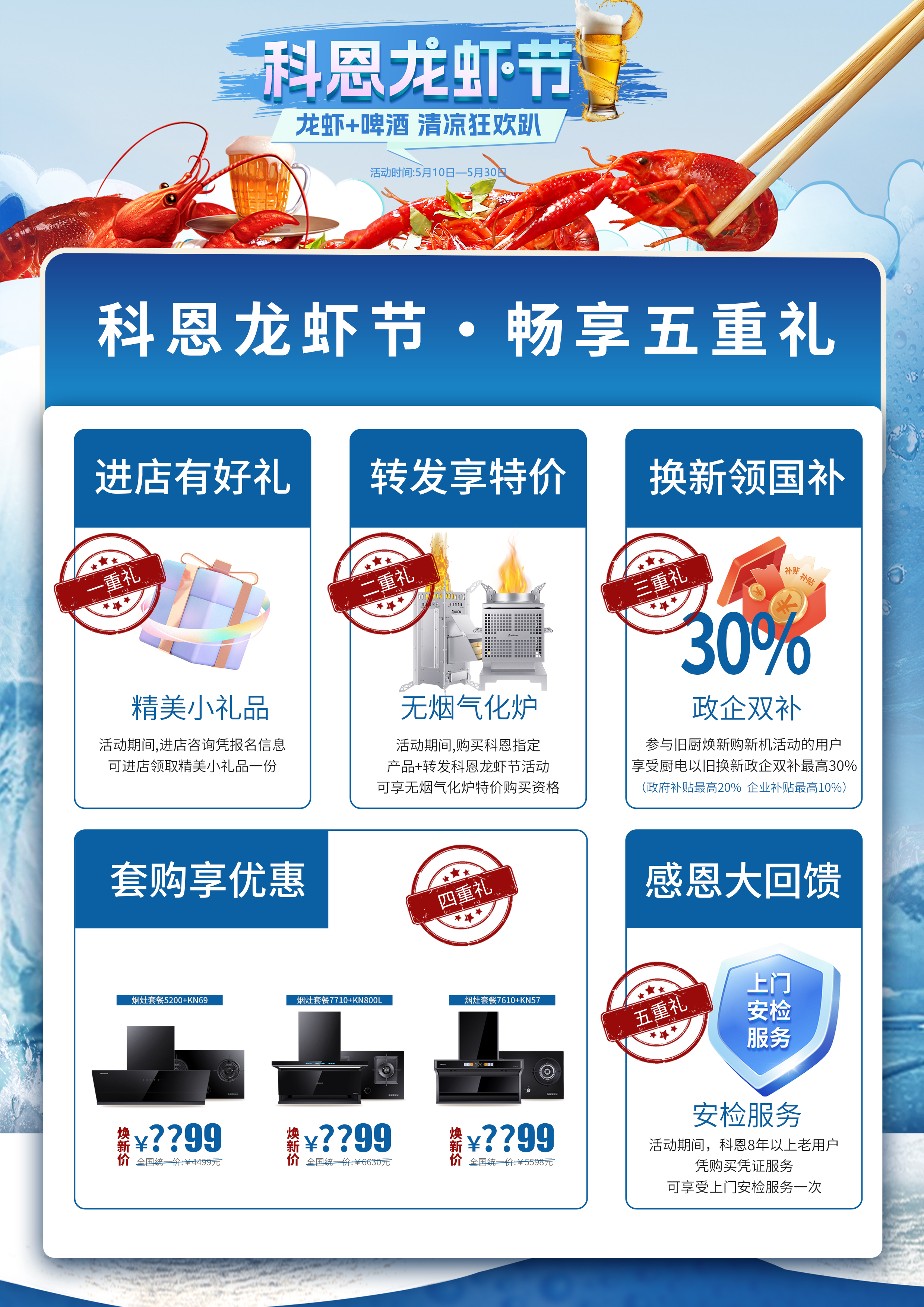 科恩龍蝦節(jié)專屬暖心服務(wù),8年以上老用戶憑購買憑證服務(wù)可享受上門安檢服務(wù)一次,讓安全和品質(zhì)始終相伴!