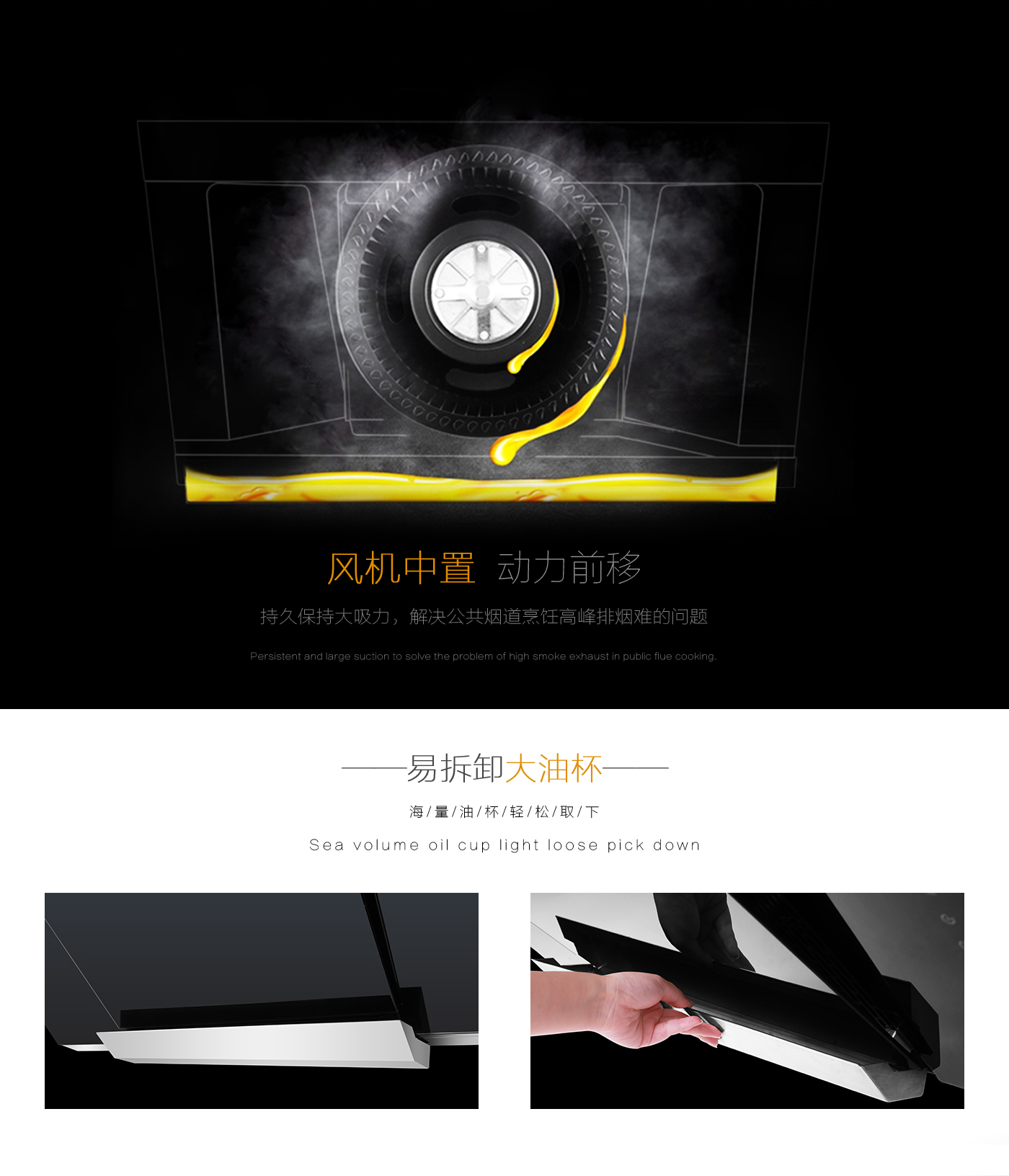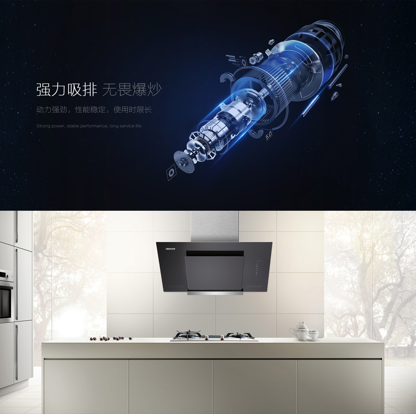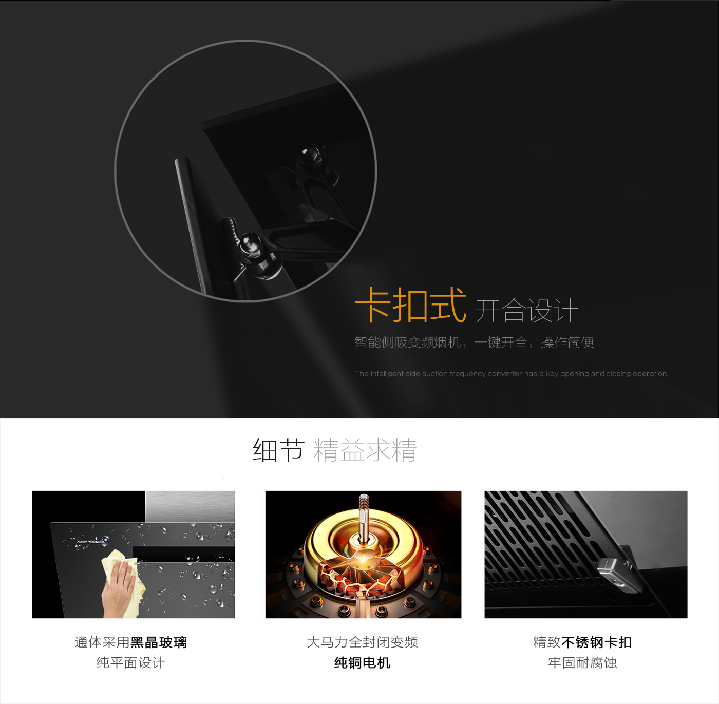 - 智能側(cè)吸變頻煙機(jī),解決公共煙道烹飪高峰排煙難的問(wèn)題。