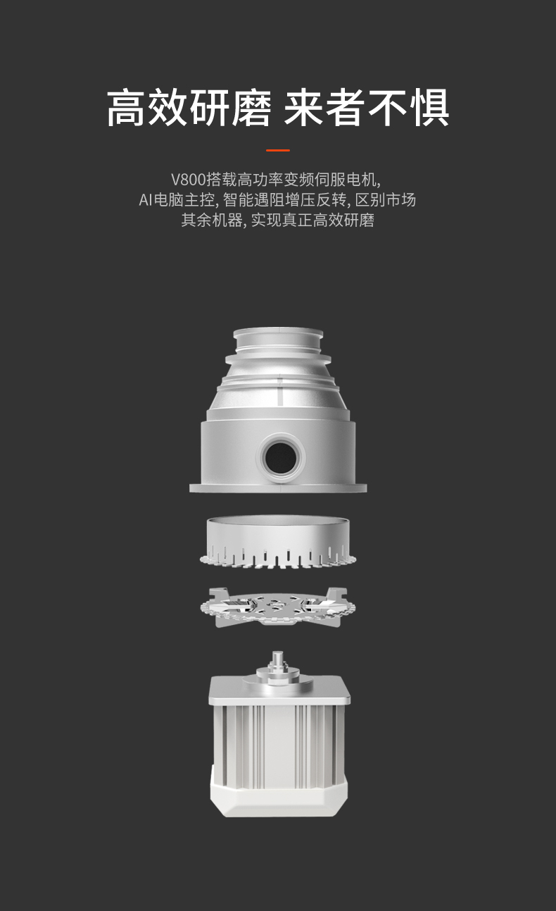600W大功率變頻永磁電機,8級精密研磨確保碎骨成渣渣。