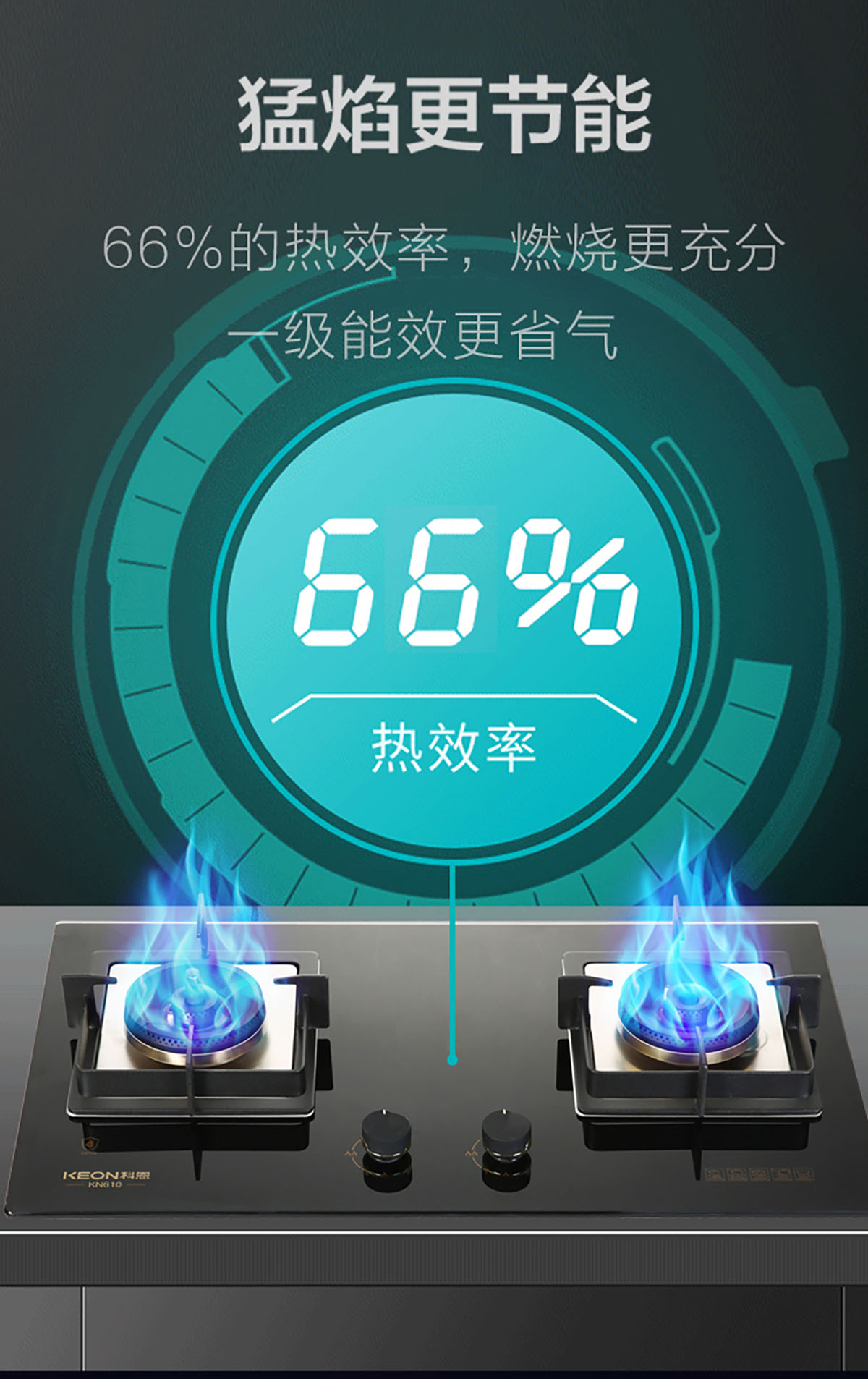 猛焰更節(jié)能,66%的熱效率,燃燒更充分,一級能效更省氣