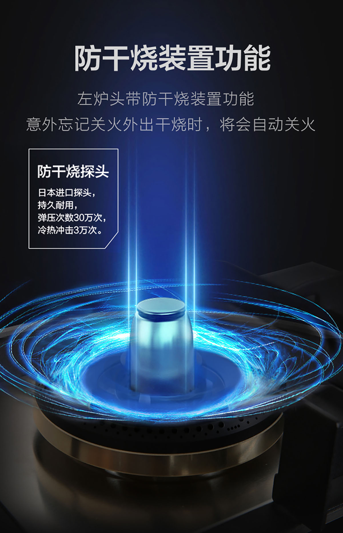 左爐頭帶防干燒裝置功能,防止意外發(fā)生