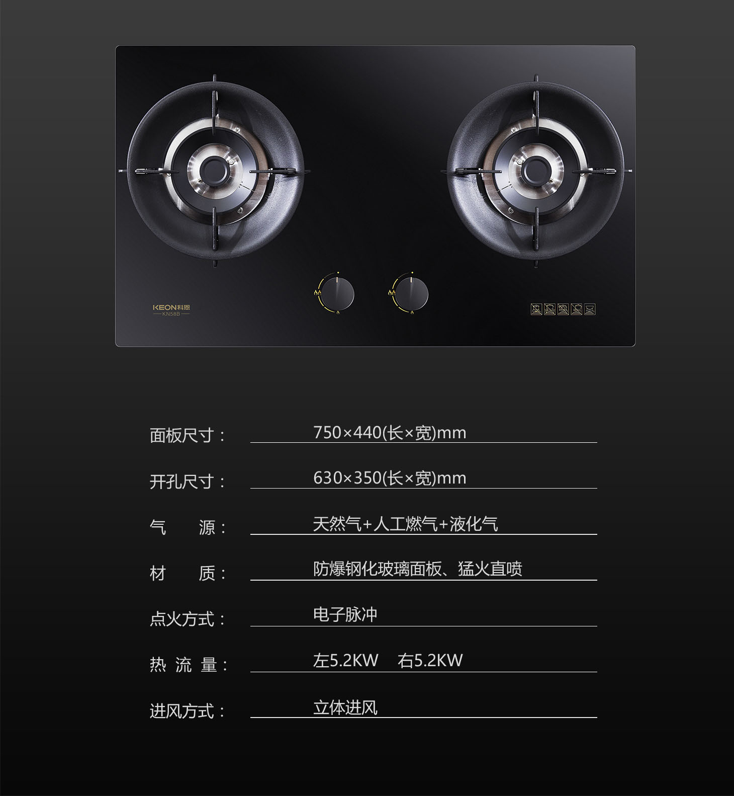 材質:防爆鋼化玻璃面板、猛火直噴