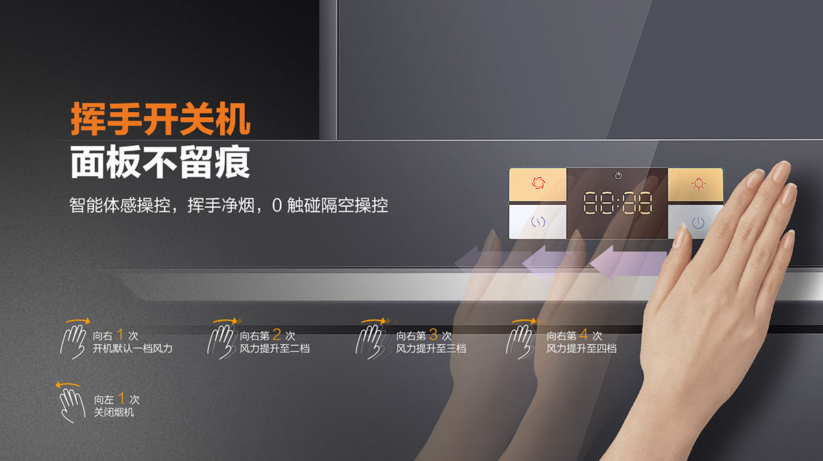 智能體感,0觸碰隔空操控,揮手凈煙