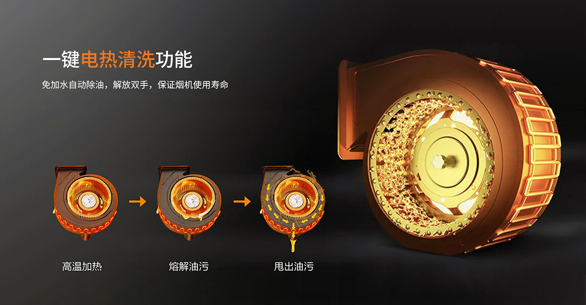 一鍵電熱清洗功能,解放雙手,保證煙機使用壽命