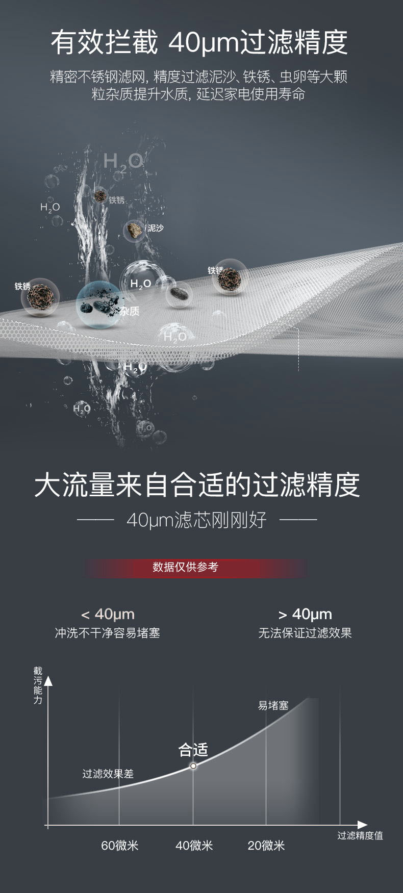40μm過濾精度,精密不銹鋼濾網,提升水質