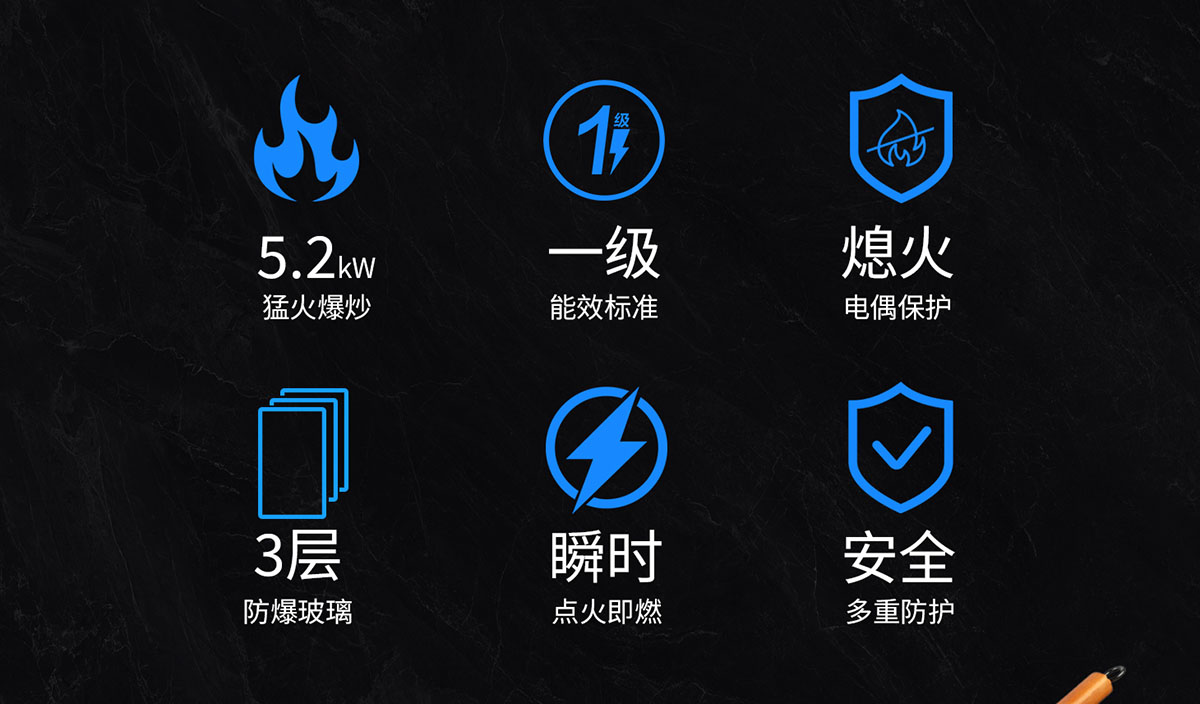 - 三噴引射,立體進(jìn)氣,5.2kW大火力盡享爆炒