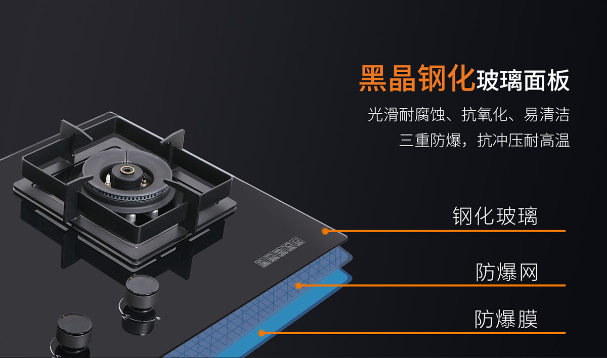 - 黑晶鋼化玻璃面板,防爆抗氧化、易清潔