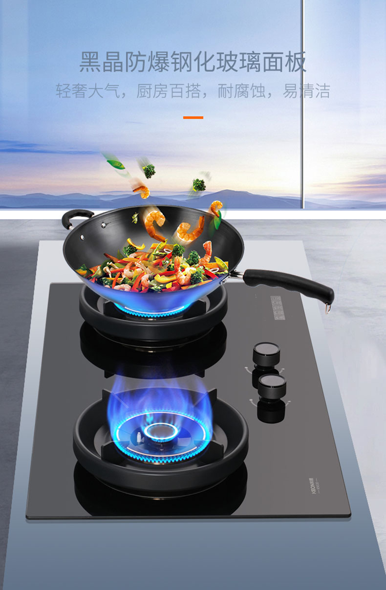 - 黑晶鋼化玻璃面板,防爆抗砸,彰顯廚房格調