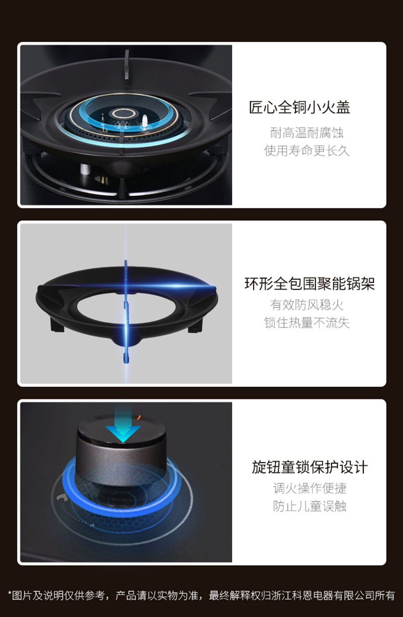 - 燃燒器水平固位設(shè)計(jì),杜絕爆火離火,火候輸出更均勻
